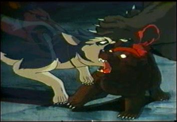 John hyökkää toisen karhunpennun kimppuun ja iskee hampaat sen kurkkuun