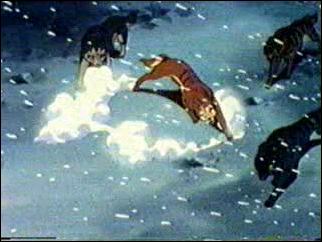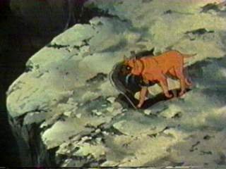 Ben yrittää heittää Sniperin kalliolta alas, mutta Sniper onnistuukin tarttumaan Beniin, ja molemmat koirat putoavat alla virtaavaan jokeen...