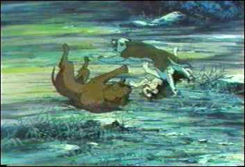 Samoihin aikoihin Ben ja muu lauma suree ja huutaa kraatterissa Terryn perään