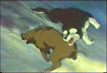 Lyhyen keskustelun jälkeen koirat hyökkäävät toistensa kimppuun