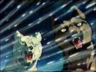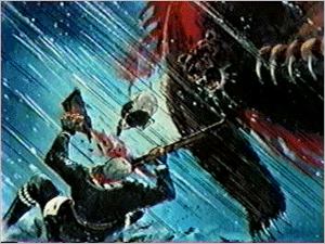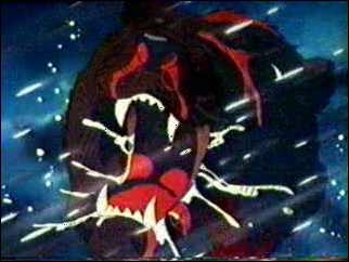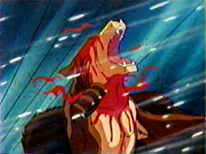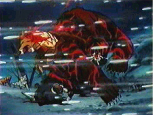 Gohē halaa Rikiä ja Giniä, mutta taustalla Akakabuto nousee ylös