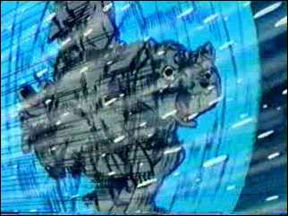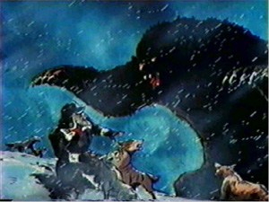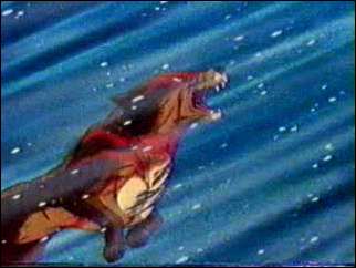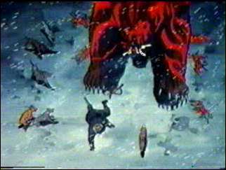 ...mutta Riki syöksyy väliin ja karhu lävistää sen kynsillään