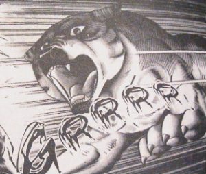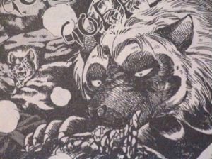 Ken ja Kagetora yrittivät estää sitä ja Kagetora hyökkäsi sen kimppuun. Hirviö koira kuitenkin raapaisi Kagetoran oikeaa silmää ja koira lensi kaaressa kohti kuilua.