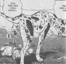 Koira, jolla ei ole korvia ja on täplikäs, sanoo jotain vihaisesti alistuneelle Huskylle(?). Koira käskee kahta alamaistaan tekemään selvää Huskysta ja ne ottavat tämän korvista kiinni. Lopulta he katkaisevat Huskyn jalat irti. Koira katsoo Huskyä ja käskee laumansa lähteä.