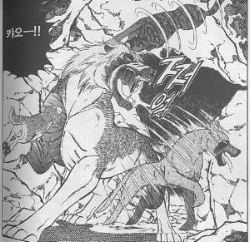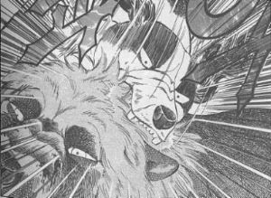 Sisällä Deadly yrittää osua tassullaan Weediin, kunnes Ken tippuu Deadlyn päähän. Koira katsoo molempia vihaisesti ja Weed menee sen alta. Ken yrittää samaa, mutta koira saa Kenin kaulasta kiinni. Kagetora katsoo ylhäällä peloissaan ja Weed hyökkää Deadlyn kimppuun. Kagetora hyppää ja ottaa Deadlyn harjasta kiinni. Koira päästää Kenistä irti ja alkaa riehumaan.