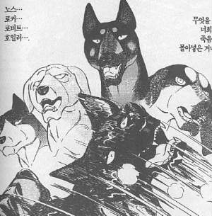 Weed,Ken,Kagetora ym. Gaiyossa olleet koirat palaavat lauman luokse ja hengissä selvinneet koirat nähdessään lauma ilostuu, mutta Kagetora ja Ken alkavat itkemään ja kertovat muulle laumalle kuin Smithin kävi.